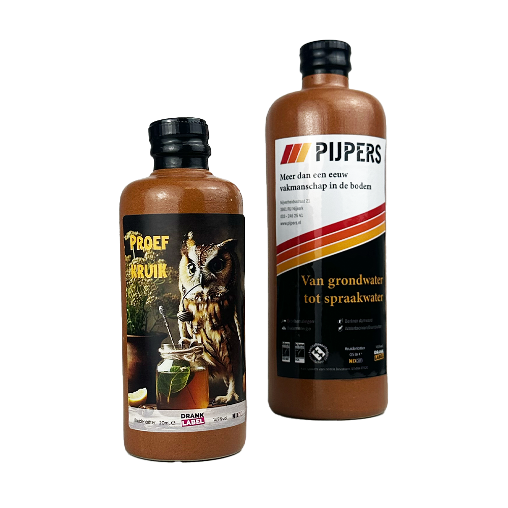 Ontwerp je eigen kruidenbitter met etiket bij DrankLabel. Of het nu voor het kerstpakket, een relatiegeschenk of als eigen streekproduct. Onze populaire kruidenbitters zijn eenvoudig te personaliseren en een heerlijke borrel tijdens de koude dagen.