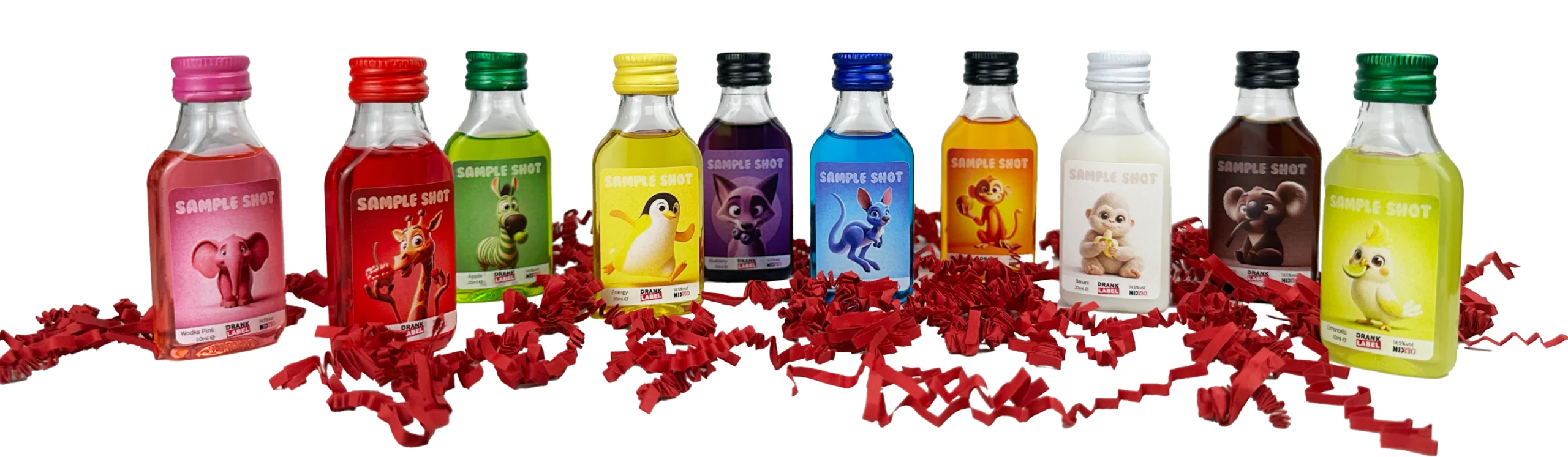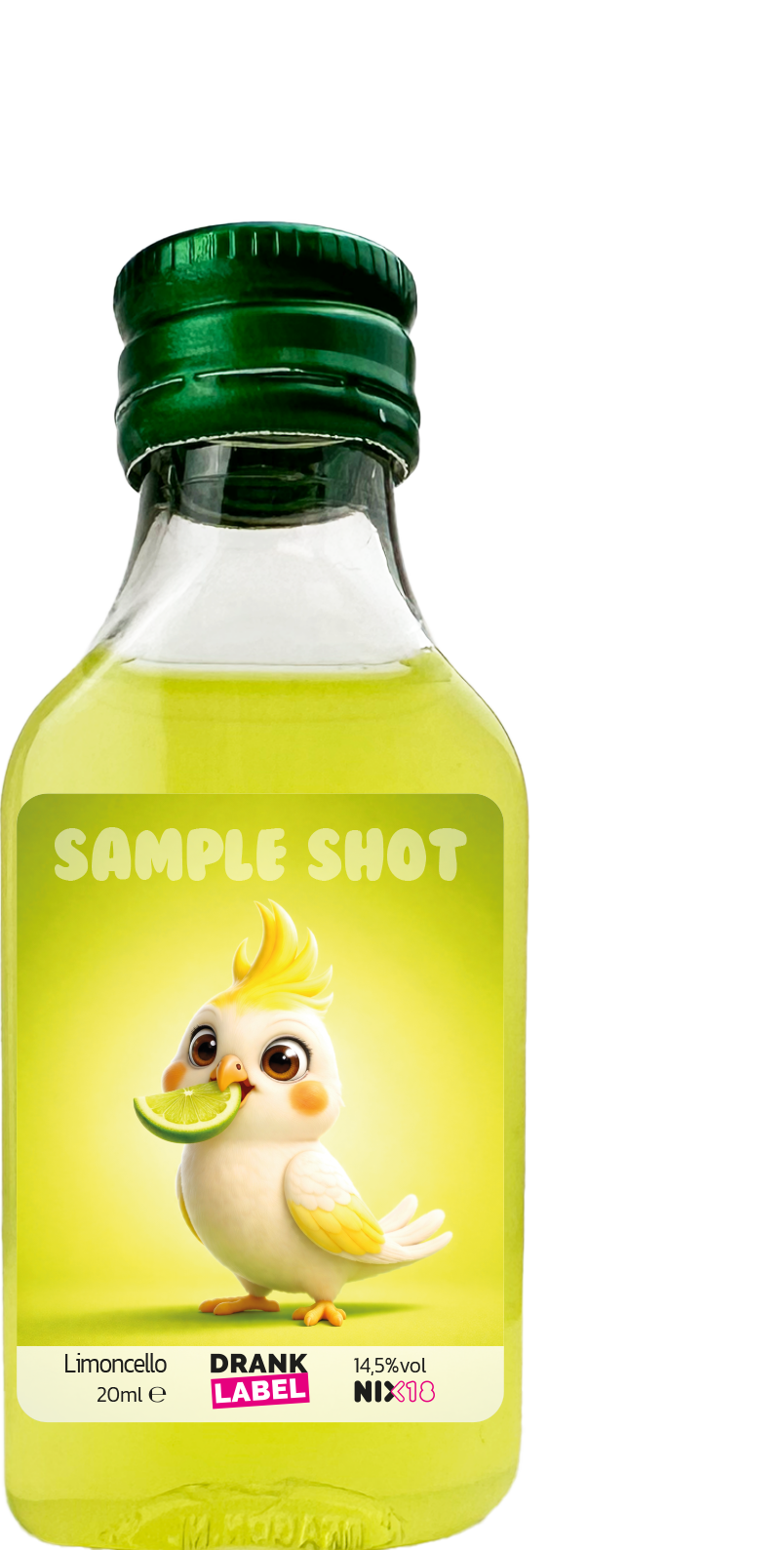 Maak je eigen shotje met etiket bij DrankLabel. Bij DrankLabel weet je wat je kan verwachten en zijn we gespecialiseerd in het maken van shotjes met etiket. We hebben alle populaire smaken, het enige wat jij nog moet doen is een mooi etiket ontwerpen in onze eenvoudige ontwerpmodule.